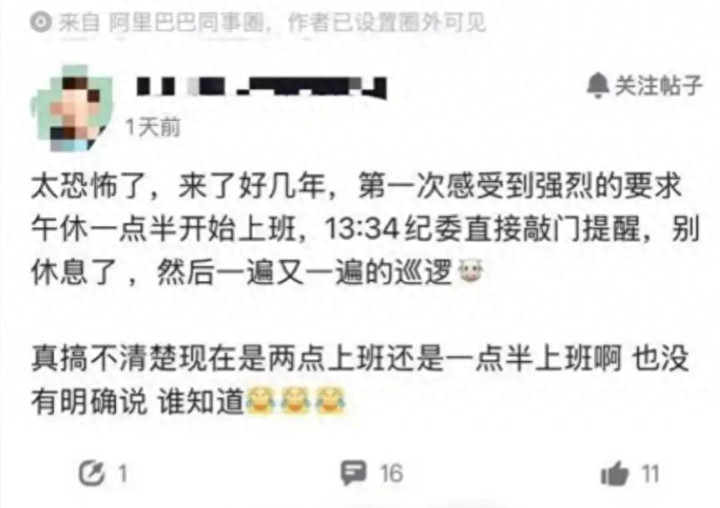 关于阿里严查午休的事情,天下如何看?接待在留言区说出你的念念法。